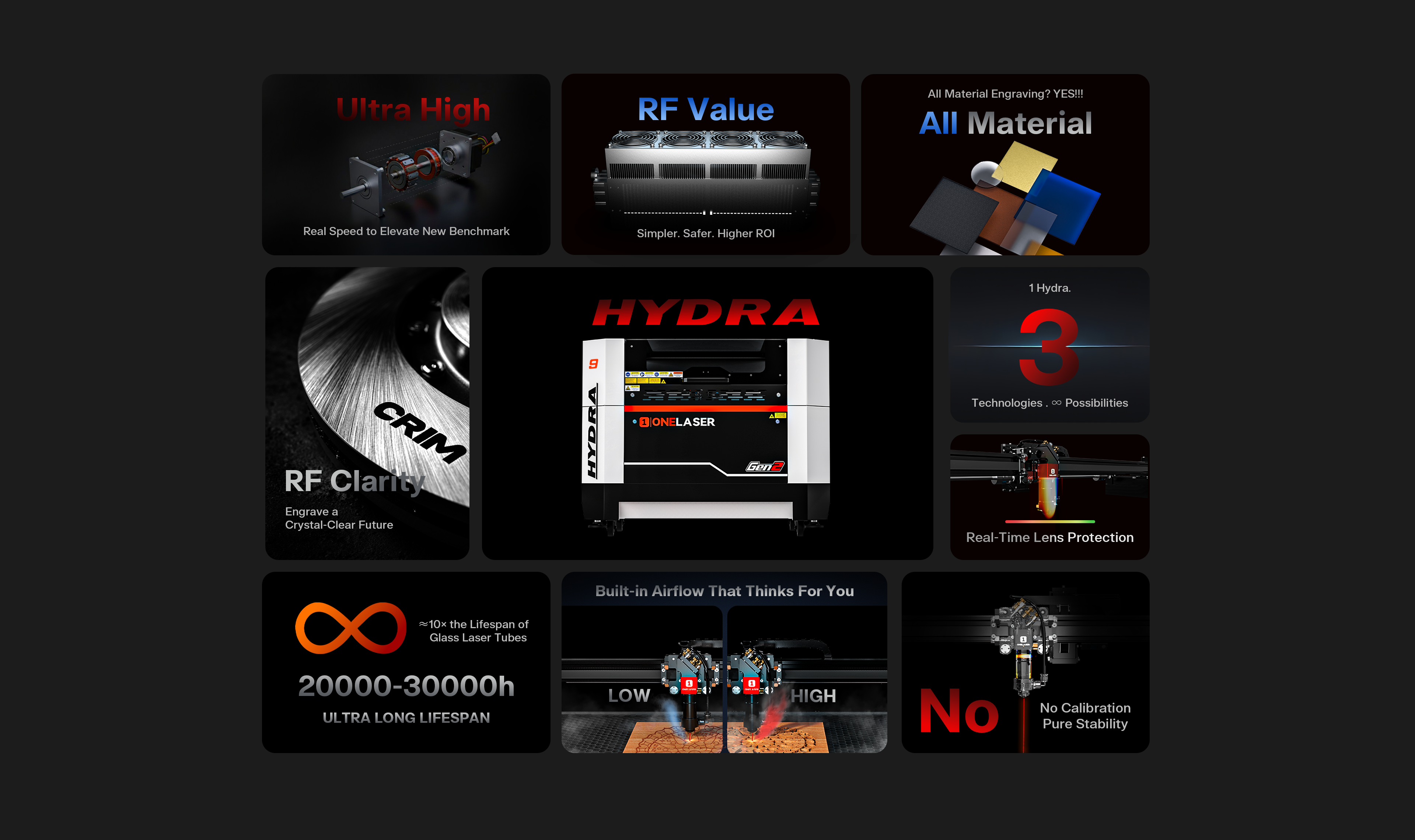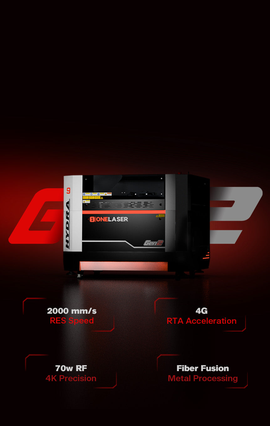 ONELASER Hydra 9 Gen2 – RF Laser Cabinet System, High-Speed Engraving, Smart Air Assist, Optional Fiber & 100W CO₂ Upgrades