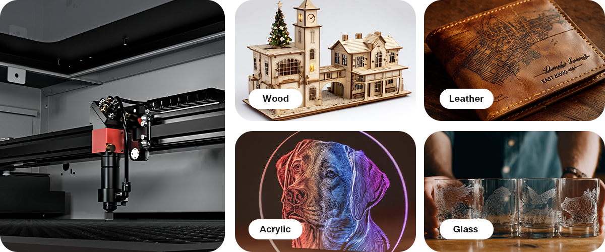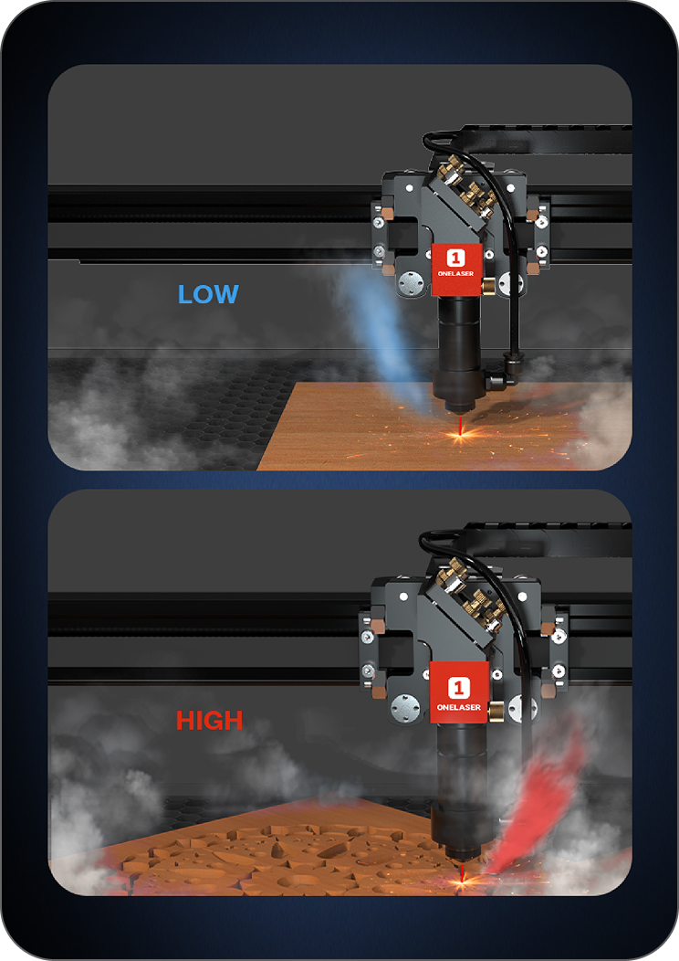 Automatically switches between gentle engraving and powerful cutting for clean, precise results.