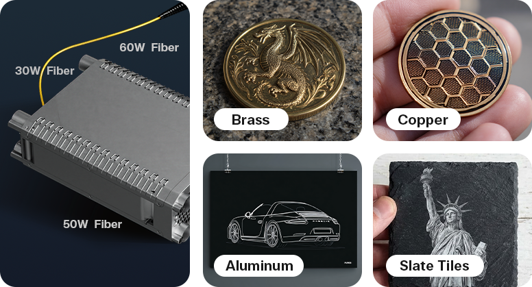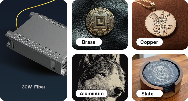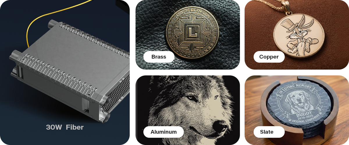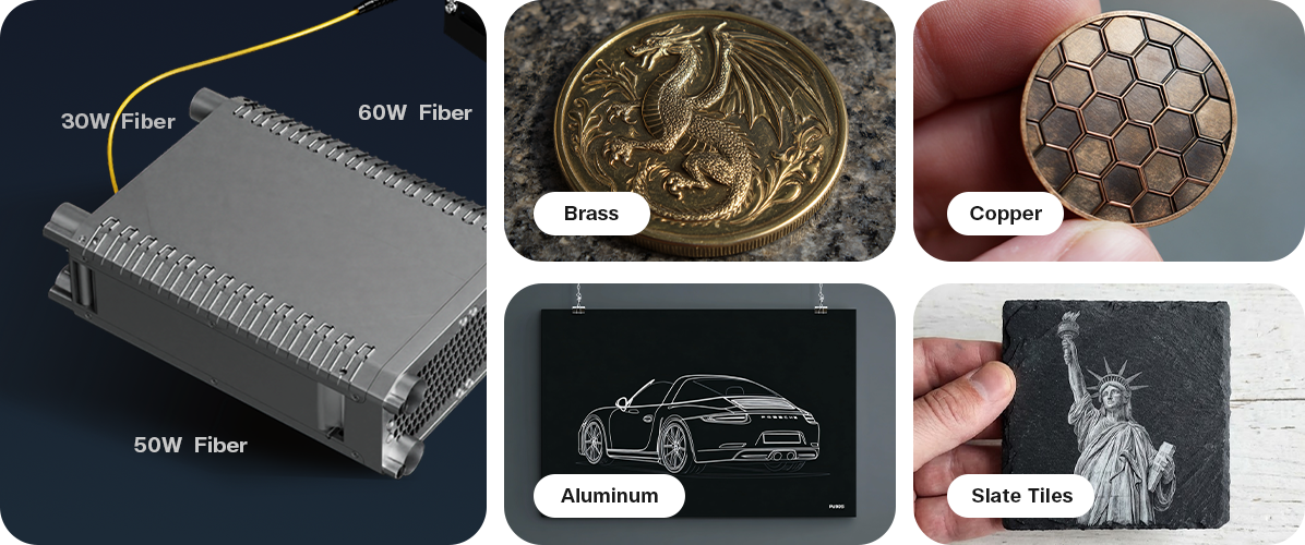 Optional Q-Switch Fiber unlocks high-speed, large-format 2.5D metal engraving and marking.